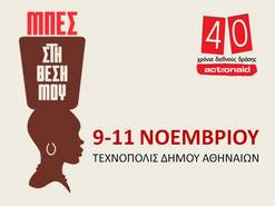 Με αφορμή τα 40 χρόνια διεθνούς δράσης η ActionAid γιορτάζει και μας καλεί να ανακαλύψουμε τις απαντήσεις, συμμετέχοντας στο «Μπες στη θέση μου» από τις 9 έως τις 11 Νοεμβρίου στην «Τεχνόπολη» του Δήμου Αθηναίων.