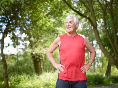 Smiling older man standing outside