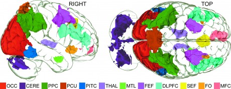 Παρά το γεγονός ότι το δίκτυο του νοητικού χώρου εργασίας φαινόταν να απλώνεται σε όλον τον εγκέφαλο, κάποιες περιοχές φάνηκε να εμπλέκονται ιδιαίτερα σε αυτό. Αυτές ήταν ο πλάγιος προμετωπιαίος φλοιός και ο οπίσθιος βρεγματικός φλοιός, δύο περιοχές που αποτελούν το λεγόμενο «μετωπιαίο βρεγματικό δίκτυο», το οποίο συνδέεται με ανώτερες γνωσιακές λειτουργίες όπως η λειτουργική μνήμη, οι μαθηματικοί υπολογισμοί ή η αναλογική συλλογιστική. «Η μία βρίσκεται στον μετωπιαίο λοβό, στο μπροστινό μέρος του εγκεφάλου και η άλλη στον βρεγματικό λοβό, προς τα πίσω» εξηγεί ο κ. Σλέγκελ. «Πάρα πολλές μελέτες διερευνούν αυτές τις περιοχές και έχουμε αρχίσει να καταλαβαίνουμε σε τι ειδικεύονται». Ο βρεγματικός φλοιός σχετίζεται με την προσοχή, με το ποια τμήματα δηλαδή της εμπειρίας του προσέχει κάποιος, ενώ ο προμετωπιαίος φλοιός σχετίζεται με την κατεύθυνση του εγκεφάλου – κατευθύνει την προσοχή, τη λειτουργική μνήμη καθώς και πολλές διαφορετικές λειτουργίες και συμπεριφορές, όπως εξηγεί ο επιστήμονας. «Φαίνεται λοιπόν ότι το μετωπιαίο-βρεγματικό δίκτυο εμπλέκεται ιδιαίτερα στην ευελιξία της κατεύθυνσης της προσοχής, κάποιες φορές κατευθύνει την προσοχή μας προς εξωτερικά ερεθίσματα, άλλες φορές την κατευθύνει προς τον εσωτερικό μας κόσμο, τις εικόνες του μυαλού μας ή τη λειτουργική μνήμη».