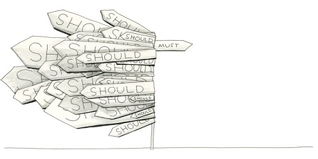 -Προσπαθήστε να βιώσετε τις τωρινές σας στιγμές έτσι ώστε οι κανόνες και τα «πρέπει» να ισχύουν μόνο γι’ αυτές. Αντί να θεωρείτε ότι τα «πρέπει» έχουν γενική ισχύ, αναγνωρίστε την αξία τους μόνο για τη συγκεκριμένη στιγμή.
