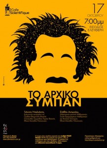 Στην εναρκτήρια εκδήλωση του θεσμού, οι κκ Γιάννης Νταλιάνης και Στάθης Αντωνίου, θα μας ξεναγήσουν με πρωτότυπο τρόπο στο «αρχικό Σύμπαν». Χωρίς επιστημονικές ορολογίες, αλλά χρησιμοποιώντας απλές μαθηματικές σχέσεις, ζωγραφιές, μπαλόνια, βίντεο, ένα απολίθωμα κι ένα ραδιοφωνάκι θα μιλήσουμε για την κοσμική Μεγάλη Έκρηξη.
