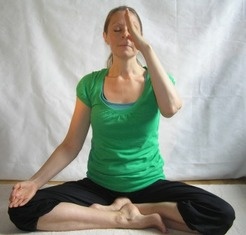 Κάθισε στην εύκολη στάση ή σε μία καρέκλα με τη σπονδυλική στήλη ίσια και κλείσε το αριστερό ρουθούνι με τον αριστερό αντίχειρα και άρχισε να αναπνέεις μόνο από το δεξί ρουθούνι.